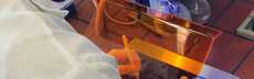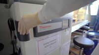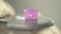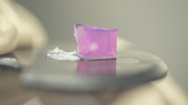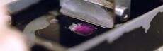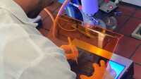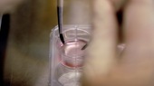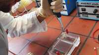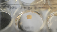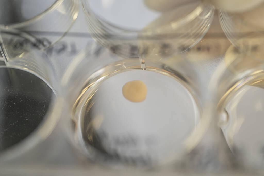 Doch bevor er es in die schwarze Gitterform gibt, braucht er eine Flüssigkeit, in die er das Organoid legen kann.