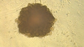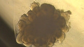 Rund um das Organoid befinden sich noch tote Zellen, die nun herausgewaschen werden.