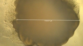Amyloid-Ablagerungen untersuchen. Das Gewebe hat nun einen Durchmesser von fast 2 Millimetern.