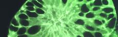 ... untersucht die eingefärbten Organoid-Schnitte am Mikroskop und analysiert die Daten.